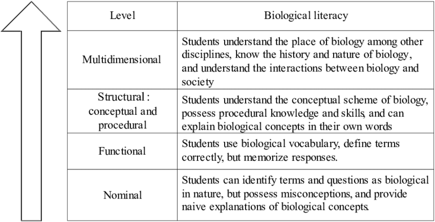 Source: Birzina, Rita. (2011). Biology students’ comprehension of learning as a development of their biological literacy.